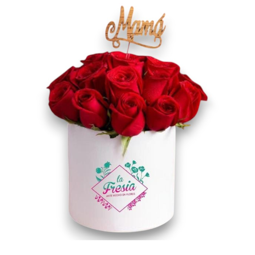 Box de 24 rosas, incluye una tarjeta personalizada y un globo pequeño