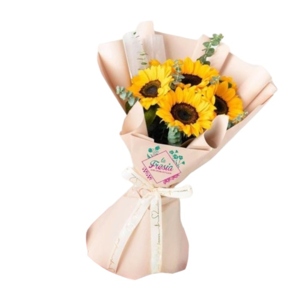 Ramo de 6 girasoles con envoltura coreana, incluye tarjeta personalizada, mas globo pequeño