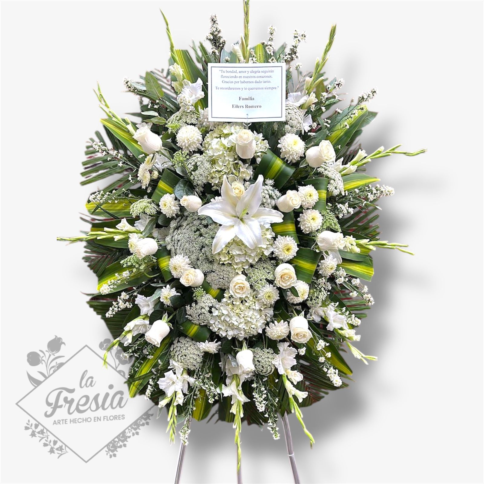 tripode de rosas blancas y lilium.